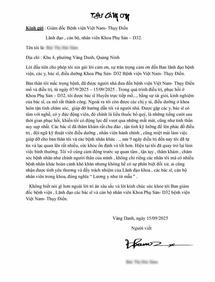 Bức thư của người bệnh gửi đến nhân viên y tế bệnh viện