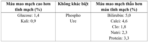 Sự khác nhau về thành phần máu mao mạch và tĩnh mạch