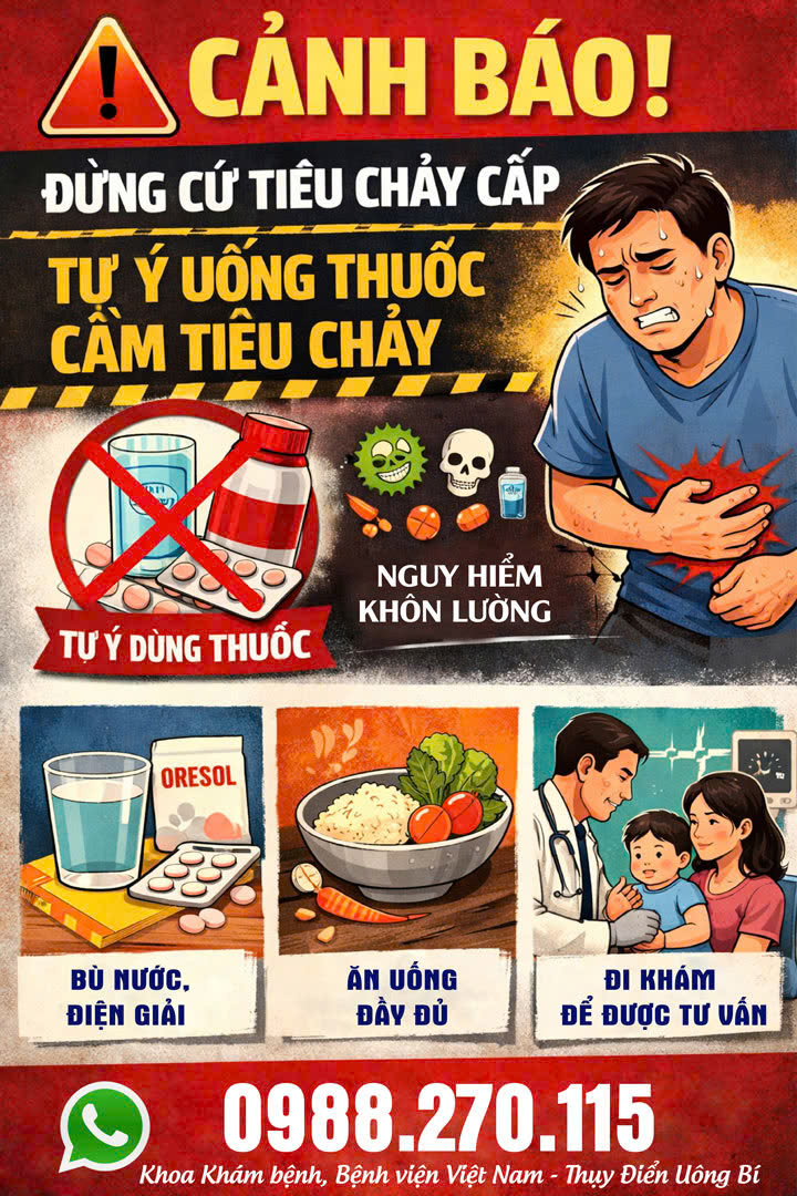 Tuyệt đối không dùng thuốc cầm tiêu chảy khi tiêu chảy kèm sốt, phân có nhầy máu, đau bụng nhiều, nghi ngờ ngộ độc thực phẩm.