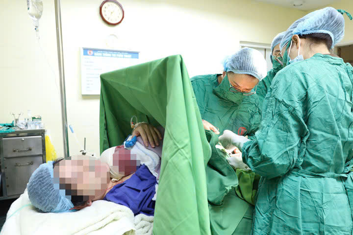 Các bác sĩ tiến hành phẫu thuật cho sản phụ