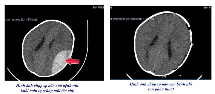 Ca phẫu thuật diễn ra khẩn trương và chính xác. Khối máu tụ được lấy ra an toàn, sức khỏe trẻ dần ổn định. Sau phẫu thuật, trẻ được theo dõi sát tại phòng hồi sức của khoa nhi. Hiện trẻ đã tỉnh táo, chơi ngoan và ăn tốt.