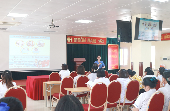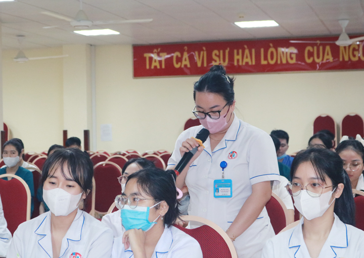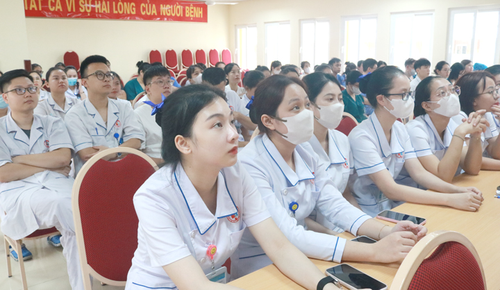Một trong số đó là lớp tập huấn “Nâng cao năng lực chuyên môn trong chăm sóc người bệnh, tìm giải pháp khắc phục tồn tại trong thực tiễn”. Đội ngũ điều dưỡng, hộ sinh, kỹ thuật viên đã được cập nhật về các xu hướng chăm sóc hiện đại theo khuyến cáo của Tổ chức Y tế Thế giới (WHO), IHI và Bộ tiêu chí chất lượng bệnh viện Việt Nam 2.0. Tham gia lớp tập huấn, học viên được tham gia phân tích những tồn tại trong quá trình chăm sóc, tìm giải pháp khắc phục, đảm bảo chuẩn hóa quy trình, lấy người bệnh làm trung tâm.