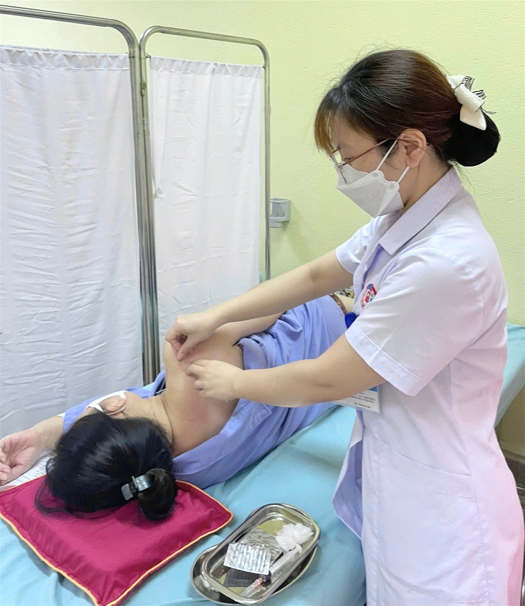 Bác sĩ điều trị viêm quanh khớp vai bằng phương pháp điện châm cho người bệnh