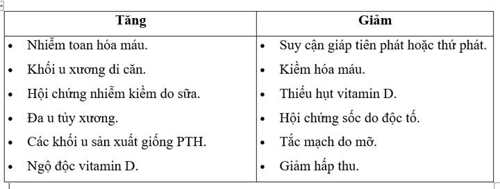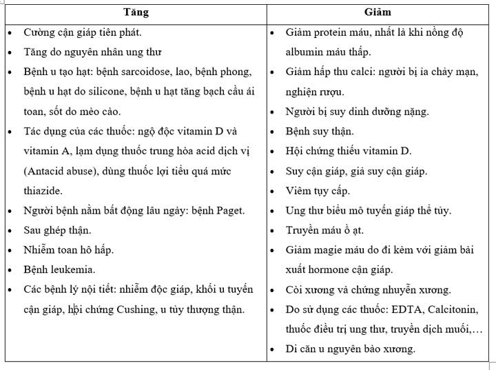 - Sử dụng các thuốc làm tăng nồng độ calci máu hoặc giảm nồng độ calci máu
