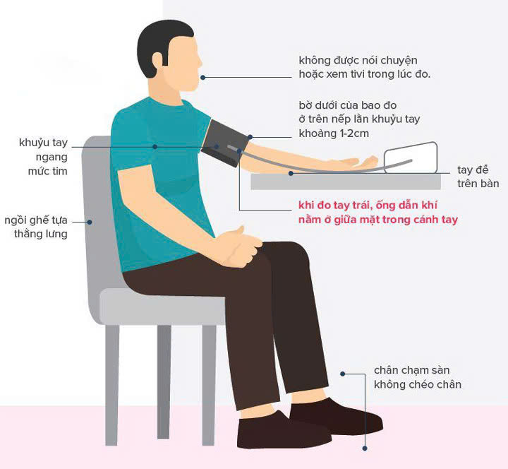 - Nghỉ ngơi trước khi đo: Hãy ngồi thư giãn ít nhất 5 phút, không đo ngay sau khi vận động, ăn uống hay hút thuốc.