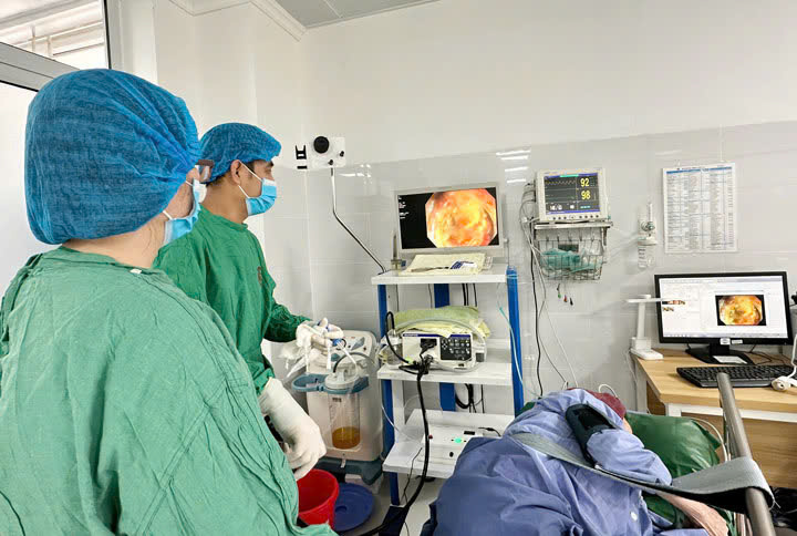 Tại bệnh viện, qua tiến hành thăm khám và thực hiện thụt tháo nhiều lần nhưng không hiệu quả, các bác sĩ đã chỉ định nội soi đại tràng. Người bệnh được gây mê nội soi đại tràng, quá trình nội soi phát hiện có 1 khối u gây hẹp lòng, là nguyên nhân dẫn tới tình trạng rối loạn tiêu hóa và đau bụng kéo dài. Các bác sĩ đã tiến hành lấy mẫu làm xét nghiệm mô bệnh học, kết quả cho thấy ung thư biểu mô tuyến.