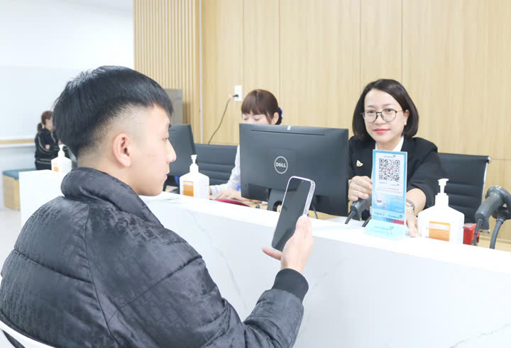 Người dân quét mã QR thanh toán chi phí tại khoa Khám bệnh
