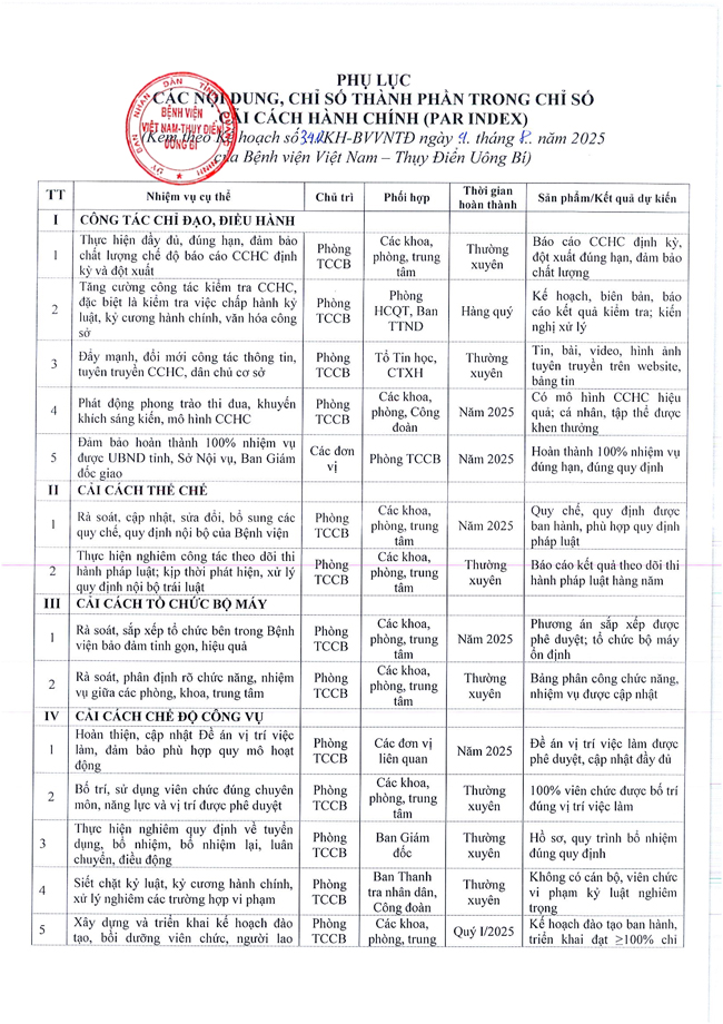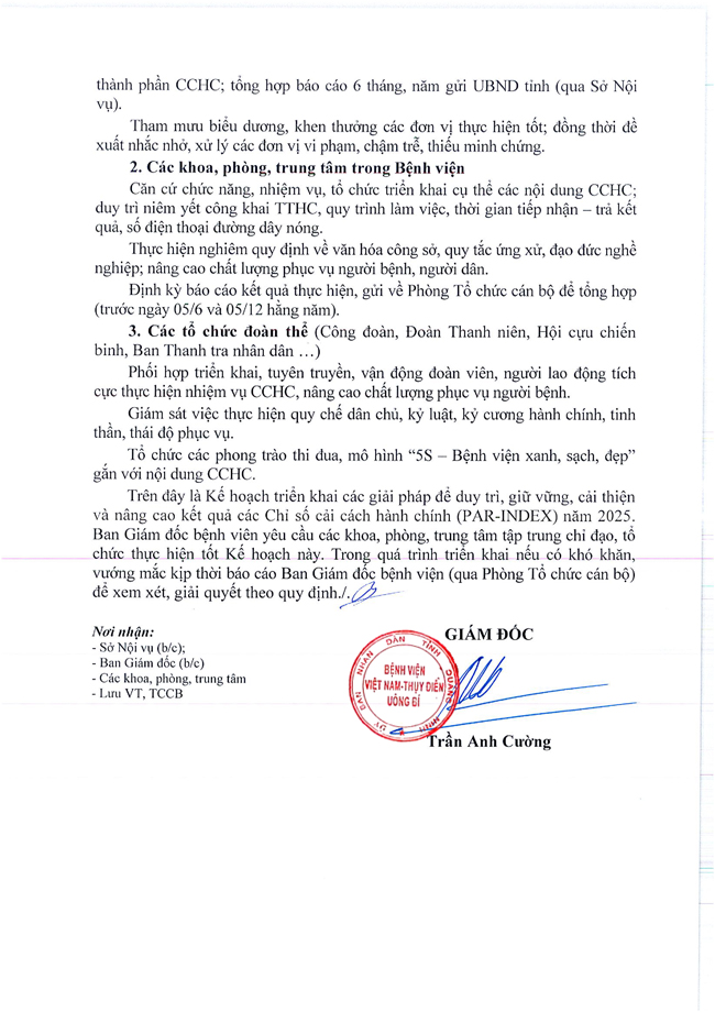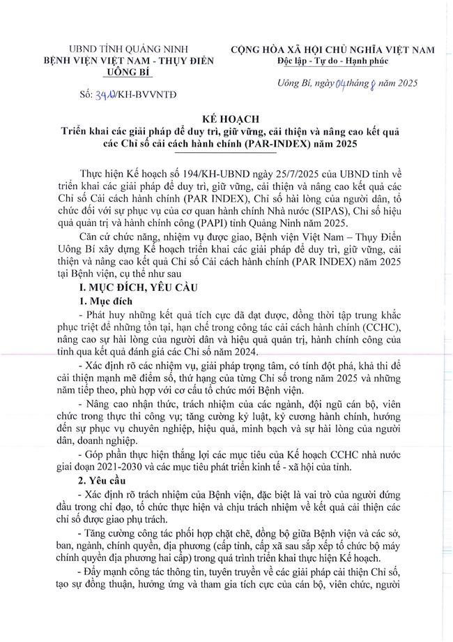Kế hoạch 3412/KH-BVVNTĐ v/v triển khai các giải pháp để duy trì, giữ vững, cải thiện và nâng cao kết quả các Chỉ số cải cách hành chính (PAR-INDEX) năm 2025