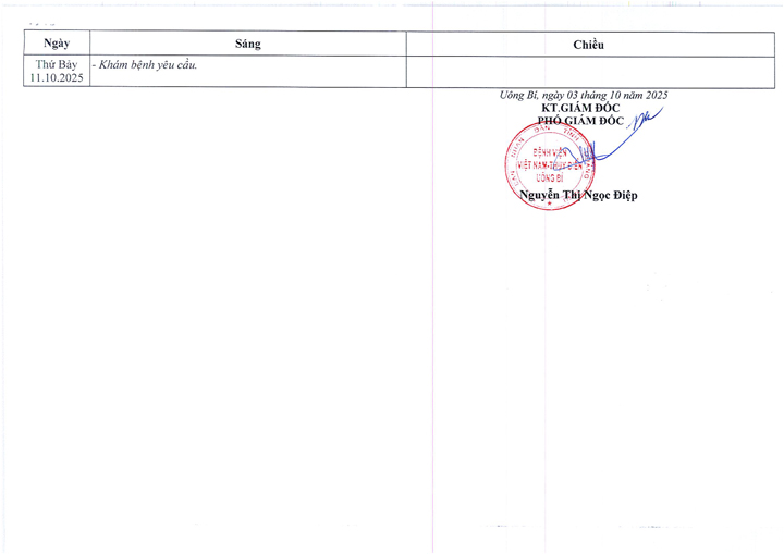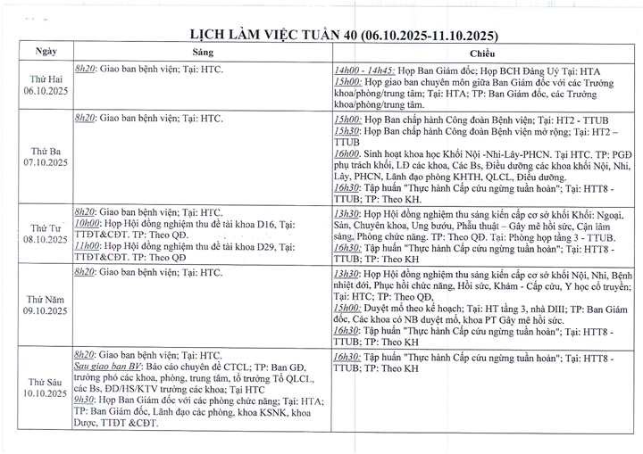 Lịch làm việc tuần 40 (06/10 - 11/10/2025)