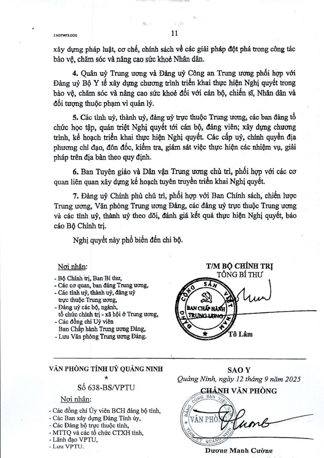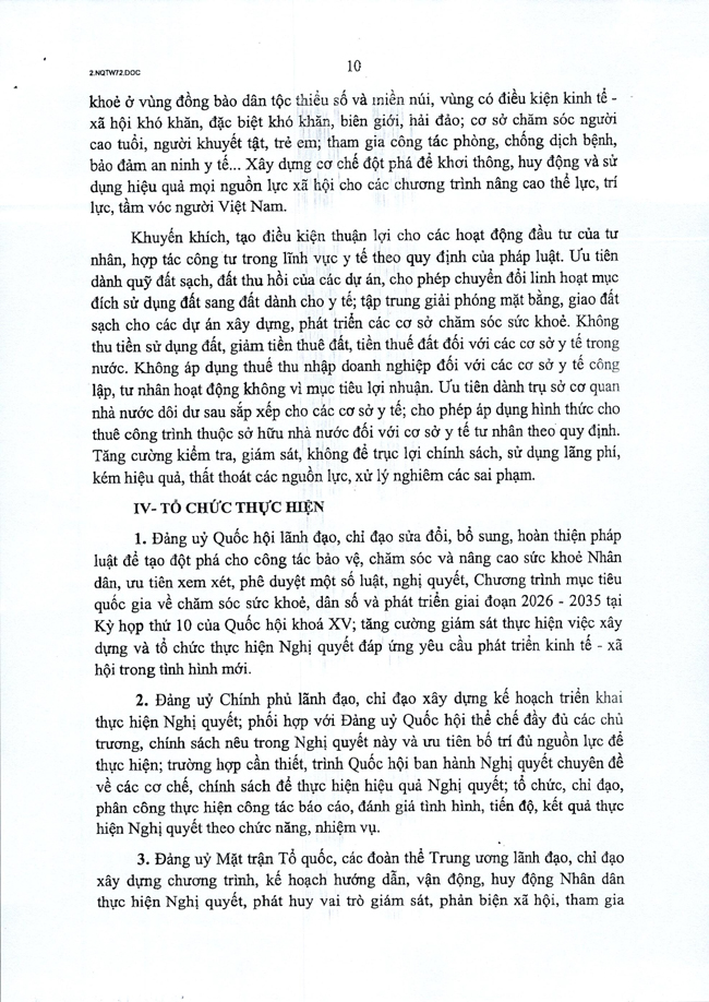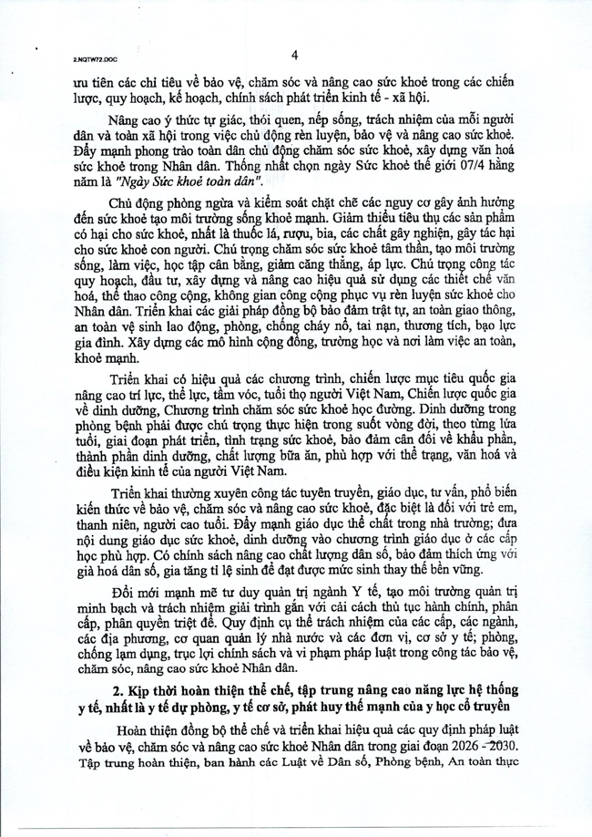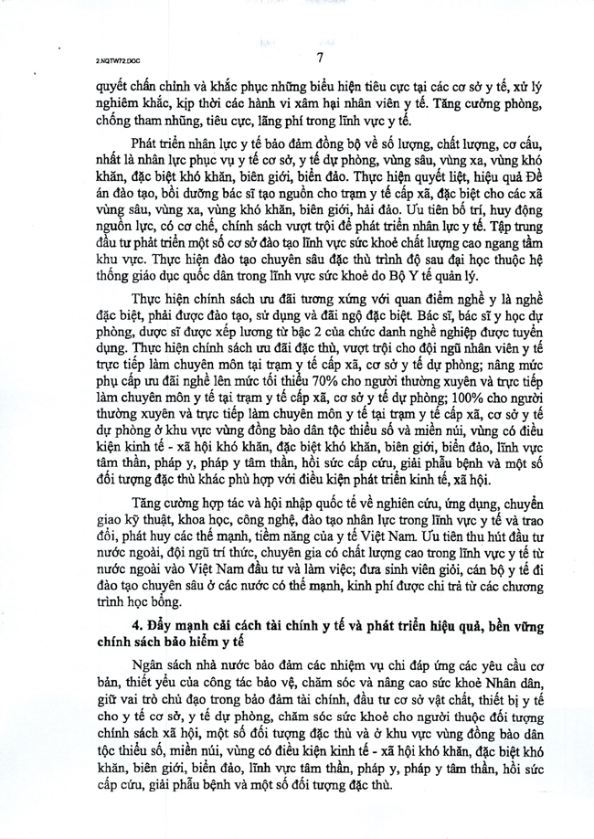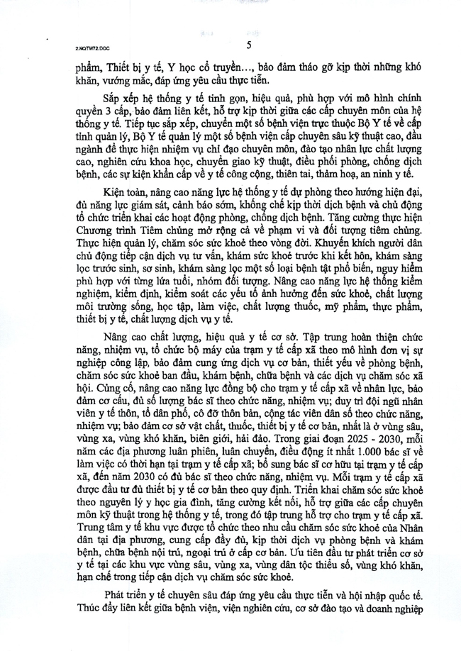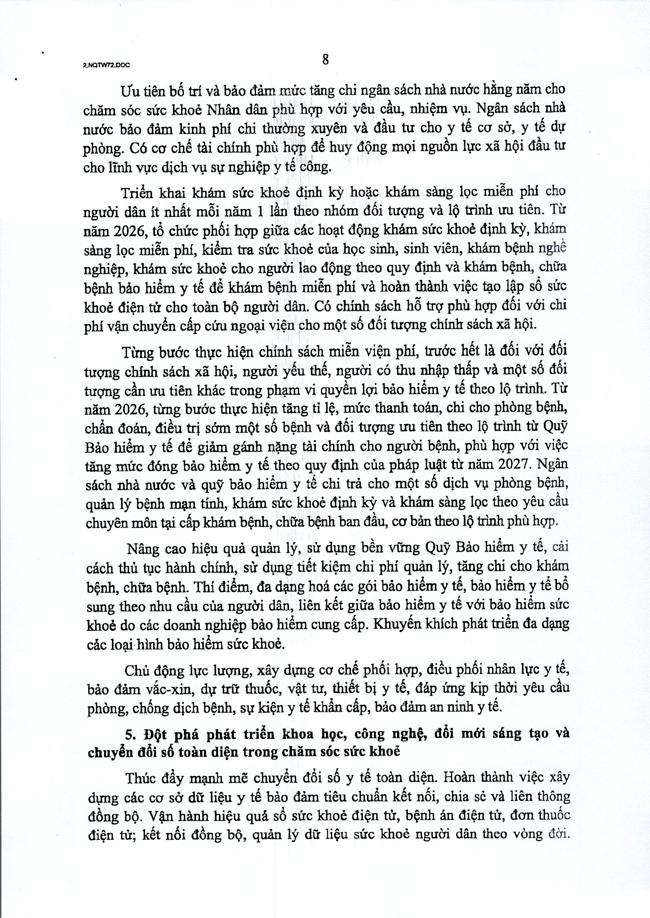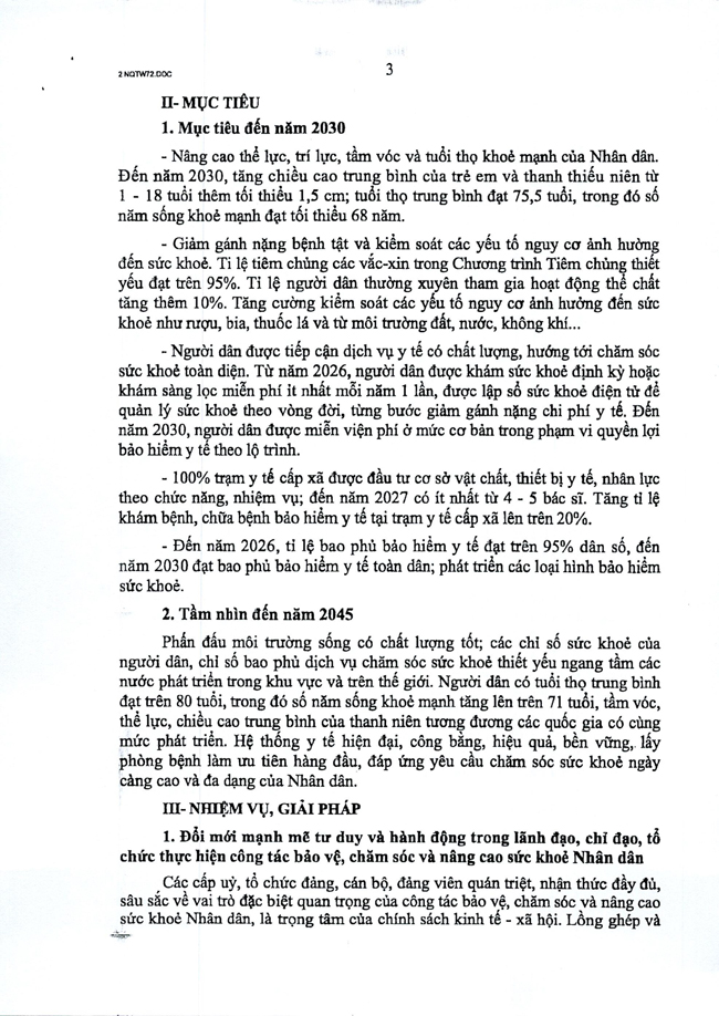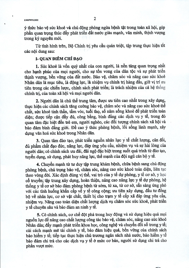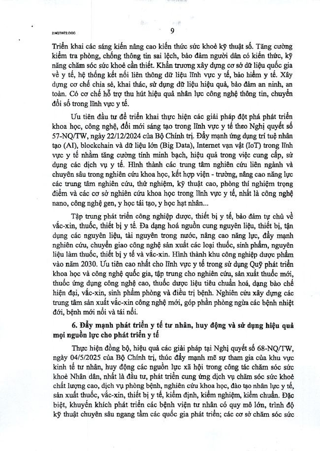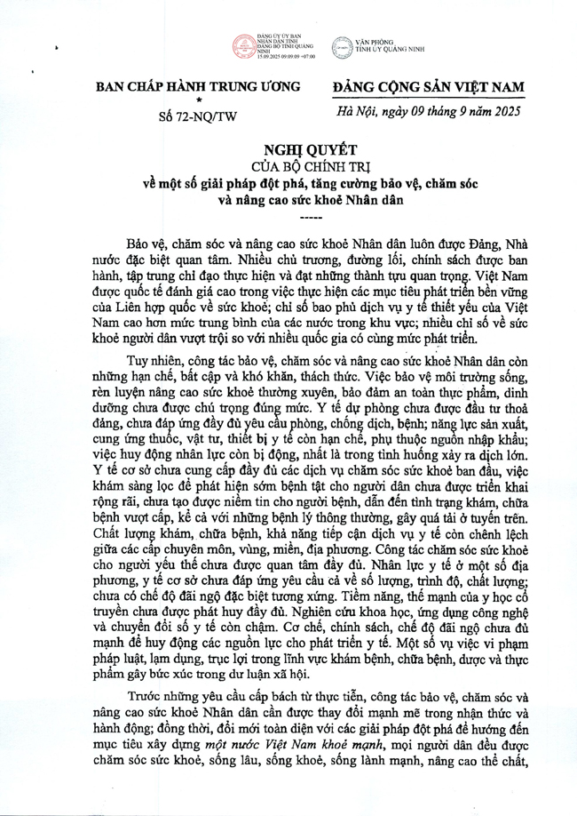 Nghị quyết số 72-NQ/TW của Bộ Chính trị về một số giải pháp đột phá, tăng cường bảo vệ, chăm sóc và nâng cao sức khỏe Nhân dân