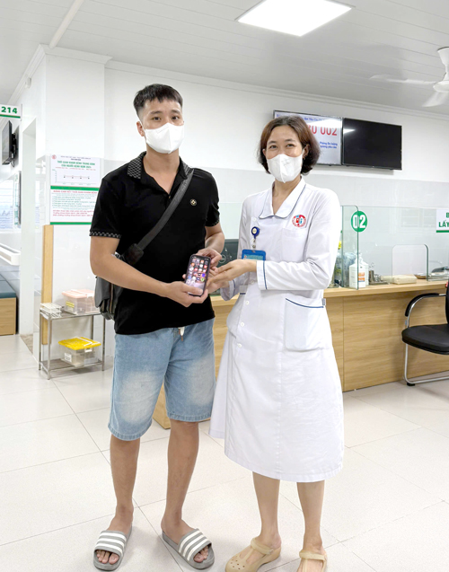 Điều dưỡng khoa Khám bệnh trả lại điện thoại cho người bệnh để quên khi đi khám