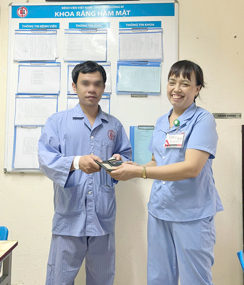 Nhân viên hộ lý khoa Răng Hàm Mặt trả lại ví cho người bệnh
