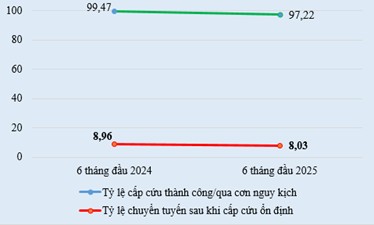 Biểu đồ so sánh xu hướng kết quả cấp cứu 6 tháng đầu năm 2024 và 2025