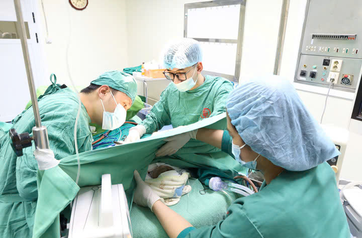 Các bác sĩ tiến hành phẫu thuật cho trẻ
