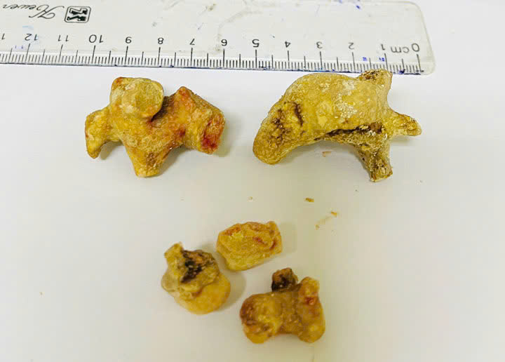 Sau khi thăm khám, thực hiện các xét nghiệm cận lâm sàng và hội chẩn chuyên môn, các bác sĩ đã chẩn đoán sỏi thận trái lớn, sỏi san hô, giãn đài bể thận... Người bệnh được chỉ định phẫu thuật lấy khối sỏi.