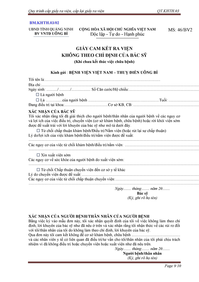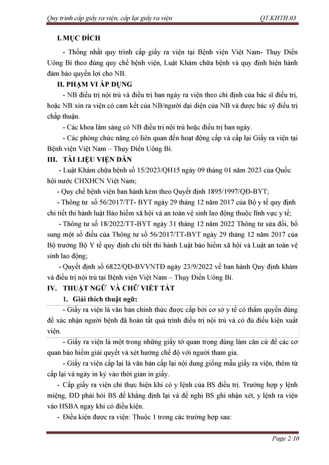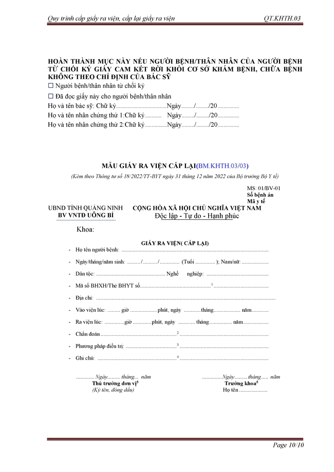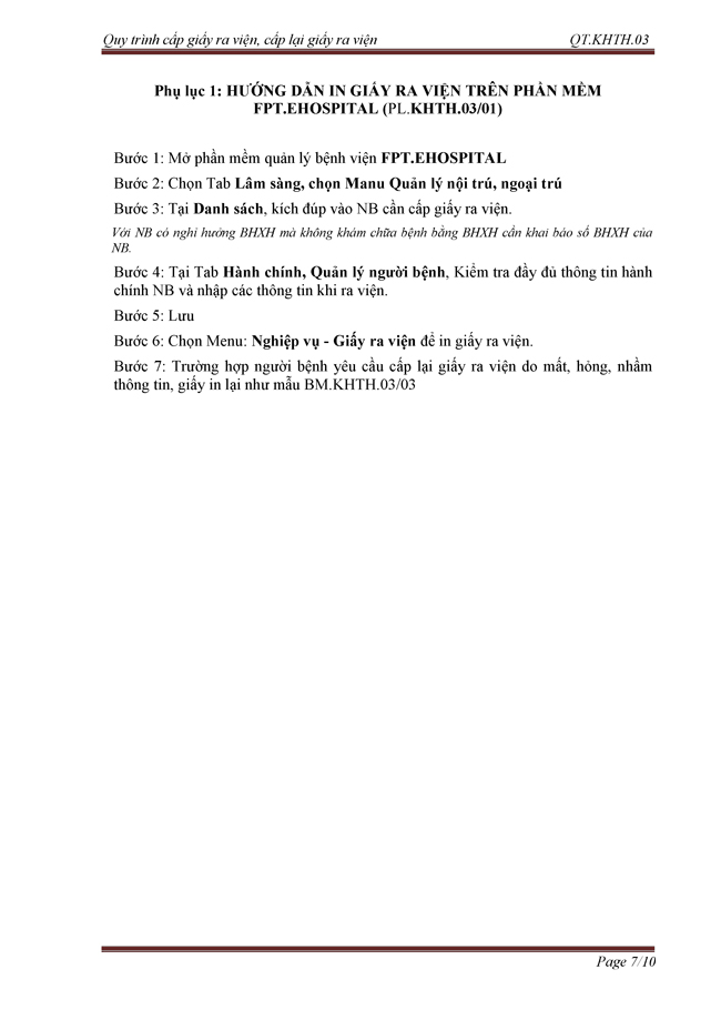 Quy trình cấp giấy ra viện, cấp lại giấy ra viện ( ban hành ngày 16/9/2024)