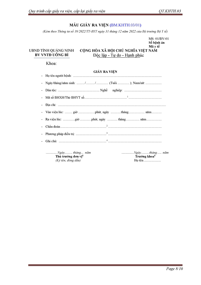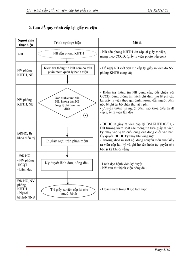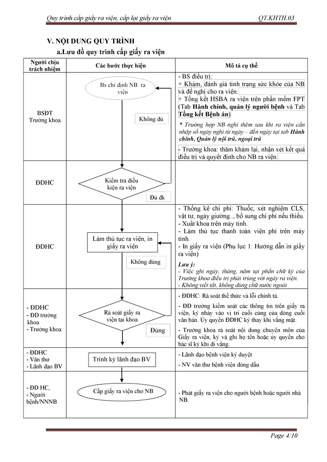 Quy trình cấp giấy ra viện, cấp lại giấy ra viện ( ban hành ngày 16/9/2024)