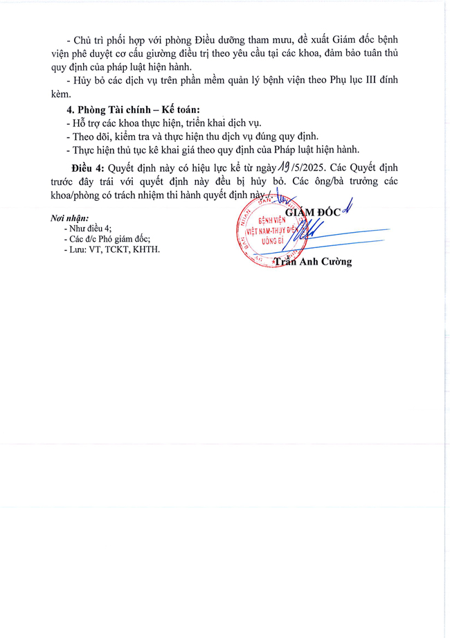 Quyết định v/v ban hành danh mục bổ sung và điều chỉnh giá dịch vụ khám bệnh, chữa bệnh theo yêu cầu đợt 1 năm 2025 tại Bệnh viện Việt Nam - Thụy Điển Uông Bí: