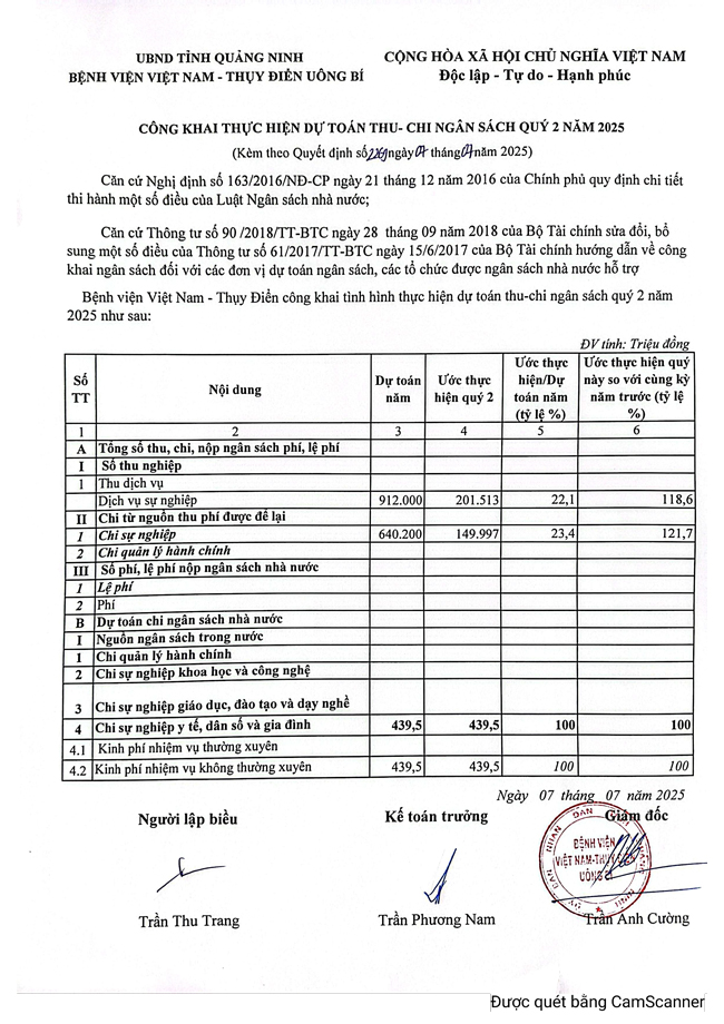Quyết định về việc công bố công khai dự toán thu chi ngân sách Quý 2 năm 2025: