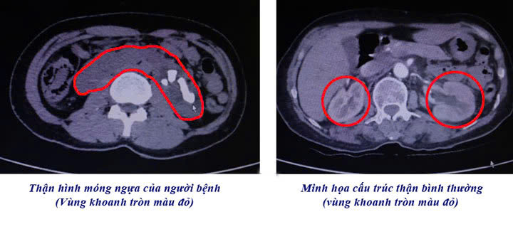 Người bệnh P.T.L. 42 tuổi, Phường Uông Bí nhập viện Việt Nam – Thụy Điển Uông Bí trong tình trạng đau quặn vùng mạn sườn trái, đau lan xuống vùng bụng dưới. Qua thăm khám, siêu âm và CT Scanner, các bác sĩ phát hiện người bệnh có dị dạng thận móng ngựa - một dị dạng bẩm sinh khiến hai thận dính nhau ở cực dưới tạo hình “móng ngựa” kèm theo sỏi thận lớn.