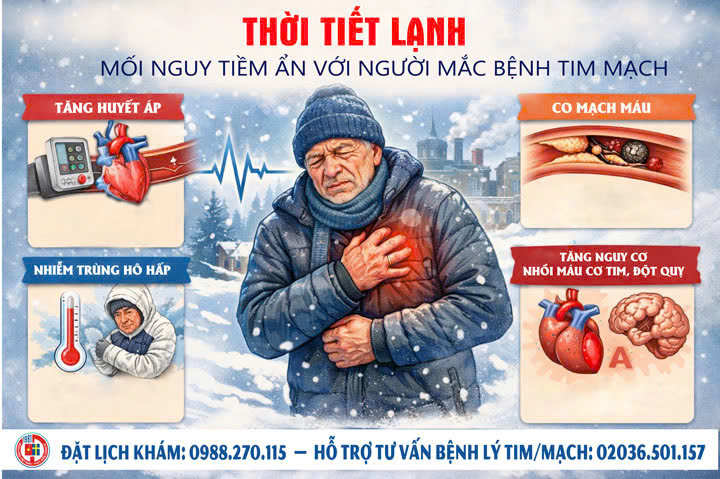 Thời tiết lạnh làm gia tăng nguy cơ biến chứng tim mạch. Vì vậy, chủ động phòng ngừa – tuân thủ điều trị – giữ ấm cơ thể chính là chìa khóa bảo vệ trái tim khỏe mạnh.