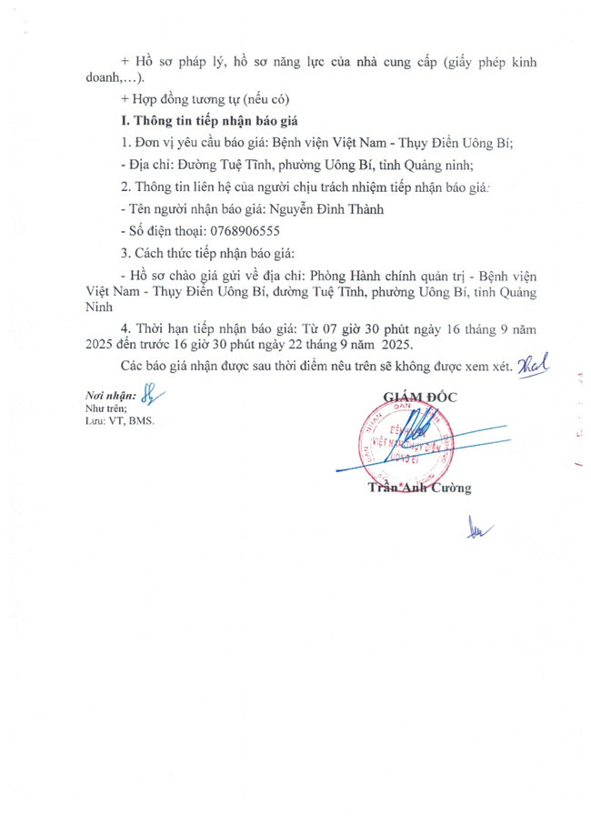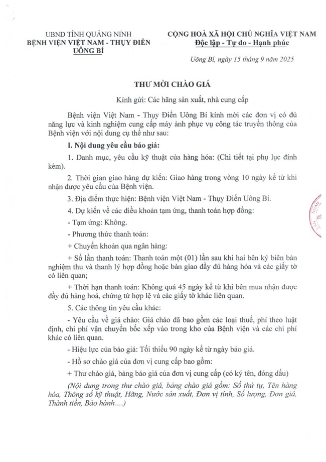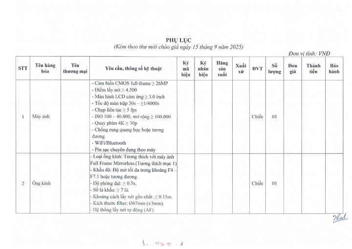 Thư mời chào giá ngày 15/9/2025 đơn vị cung cấp máy ảnh phục vụ công tác truyền thông của Bệnh viện