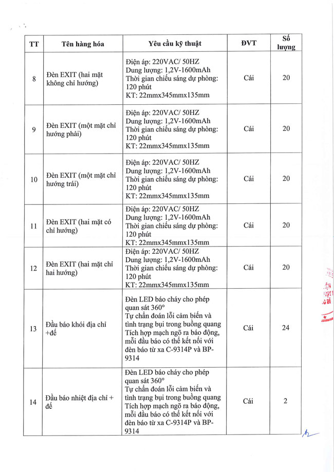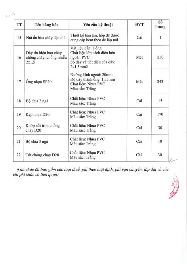 Thư mời chào giá ngày 22/01/2026 đơn vị cung cấp phương tiện, dụng cụ, thiết bị PCCC