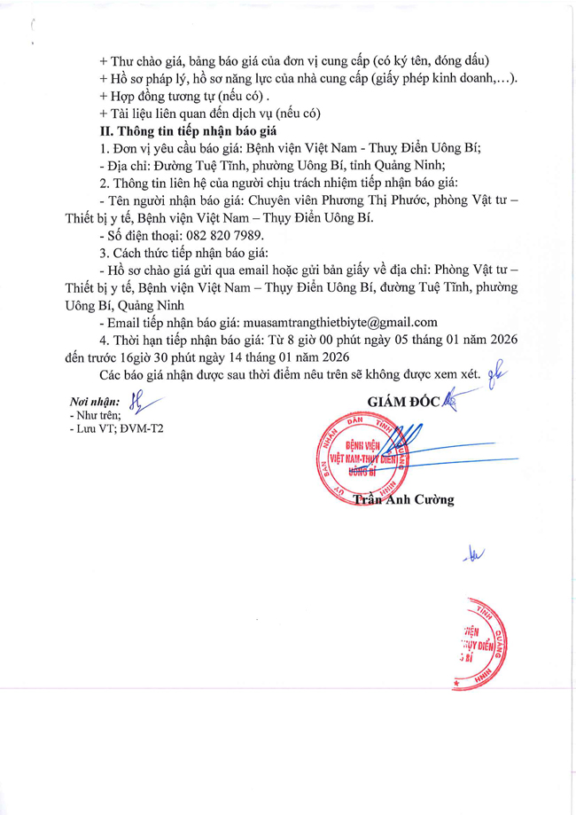 Thư mời chào giá ngày 31/12/2025 đơn vị cung cấp dịch vụ xét nghiệm mẫu nước R.O dùng trong chạy thận nhân tạo