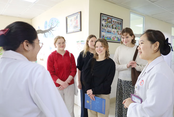 Tiếp nối truyền thống này, Bệnh viện vừa chính thức tiếp nhận nhóm sinh viên y khoa từ Trường Đại học Uppsala (Thụy Điển) đến thực tập từ ngày 26/01 đến ngày 20/02/2026. Trường Đại học Uppsala là một trong những viện đại học lâu đời và là cơ sở đào tạo y khoa hàng đầu tại Thụy Điển. Trong đợt thực tập này, các sinh viên sẽ tham gia học tập tại Khoa Nhi và Khoa Sơ sinh. Tại đây, sinh viên sẽ tìm hiểu về mô hình tổ chức, quy trình chẩn đoán, điều trị và chăm sóc các bệnh lý thường gặp ở trẻ em và trẻ sơ sinh tại Việt Nam.