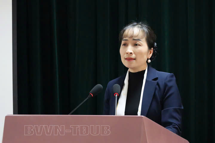 Đ/c Nguyễn Thị Ngọc Điệp, Phó Bí thư Đảng ủy, Phó Giám đốc bệnh viện truyền đạt tại hội nghị